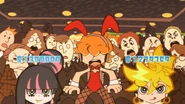 - Hitori is shown apologizing before exiting a classroom and running down the hall in tears. The scene mimics Haruko Haruhara exiting Miya-Jun's classroom and running down the hall to get to her Vespa in "Marquis de Carabas".[6]