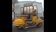 - A yellow Vespa with the "56-56" license plate can be seen parked near a store where Shinji and Kensuke visit.