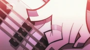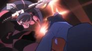 - In the 12th episode, "Spit Your Sadness Away", after Ryouko's blood begins to boil during her fight against Nui Harime, Senketsu goes berserk and swallows Ryuko with a huge toothy mouth. The scene resembles the way Naota is swallowed by Canti in "Brittle Bullet".