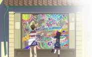 Marco is hired and used by Tonkichi to test a Viking Cruise ship ride developed by the Bureau of Interstellar Immigration at an attraction park, which is actually a weapon that can affect N.O. channels. After knocking heads with Hidomi earlier, this ride causes his N.O. channel to activate. Bamboo grows out of his forehead, scraping the concrete when the ride does a flip and sending him flying off. He lands under the Medical Mechanica factory where the bamboo begins to flip it over as a robot emerges from his head, distracting Haruko from her battle with Jinyu long enough for her to save Hidomi and Ide as they fell off the tipping iron. He is also later found riding a coin-operated duck ride at the center of the amusement mech when mochi causes it to crack open, suggesting his N.O. channel was also assisting in powering it. This also serves as the transition into the extended credit sequence for the final episode, featuring Marco riding the duck on wheels around the rubble that is Ohzu and greeting characters.