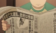 - There is a fan theory by the person writing this page that despite Kana's surname being Koumoto, this man reading the newspaper could potentially be Naota Nandaba as he's seen to have thin eyebrows and a potentially large forehead, he also dresses in colors similar to Naota from the original FLCL.