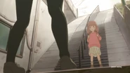 A young Kana is walking to school, looking isolated and being completely ignored by other girls her age. Just as she was about to leave the area, a young Pets greets her. Cutting back to the present, the girls are enjoying some time at the pool on an incredibly hot day. Citizens such as Dennis Yoga, who has an incredibly familiar Vespa in his possession, are suffering under the rising climate. Maki Kitaki's plan to leave Earth and lack of action gets her questioned by reporters until she storms off stage. Calling Kanda immediately after, she berates him for not solving the Medical Mechanica problem as irons around the world are moving in small increments, their steam contributing to the climate change. When the girls notice Pets is missing, Aida makes a claim that she is absent because she's part of the rich echelon evacuating to Mars. Hijiri confirms that Pets' father is a government official, but the three girls doubt the rest of the story. A frustrated Haruko tries destroying an iron with a measly piece of dynamite, but Kanda stops her while holding a toy gun from their time together and gives a speech about the iron's ability to withstand nukes making it futile. As Kana is walking home, texting Pets to no avail, a black car passes her and doubles back. The woman riding in the backseat questions Kana about her name and school before introducing herself as Pets' mother. She too is concerned about Pets' disappearance, but remains silent on probing questions about their family. She takes Kana to their family home, revealing Pets' barren room and describing her father as a strict man who is rarely home. Pets had also never invited anyone home, and her only decoration is a photo of her and Kana from when they met. Miss Hetada unknowingly reveals that Pets has been lying to her friends for some time, hiding her family's income and claiming to like photos despite only ever taking the one Kana gifted to her. Miss Hetada starts to accuse Kana of knowing where Pets is and tries to grab her as her expression turns wild. Kana manages to escape, but injures her leg running from the house. Haruko arrives in a black car, likely stolen from the Hetadas, and tells Kana to ignore the fact as she makes her get inside on her own despite her injury. Kana gives a monologue during the ride about "not knowing I didn't know anything" as Pets is shown revisiting the hangout destroyed in episode 1. A Terminal Core begins crawling through the rubble and scaring her until finally eating some wires that transforms it into a giant hand-shaped robot, trapping Pets in wires in its core. Haruko attacks it with Kana hanging onto her for safety, spotting Pets and stumbling to the core to save her as Haruko continues the fight. Kanda is on standby with an armada of tanks as Maki escapes to an "artificial island" rather than help. Haruko gets eaten by the monstrous robot, breaking out with her guitar and causing an explosion that knocks Kana down. As she pulls herself up, she questions Pets about her family's evacuation, who tries to respond but is cut off by Kana's platitudes about friends being honest. Pets snaps and starts shouting about how Kana isn't a friend, bringing up her inserting herself into Hijiri and Mossan's lives, admitting she used to like Sasaki too but gave up on it only for Kana to throw away the chance Pets' sacrifice gave her, and eventually screaming at her to shut up until she stops trying to speak. Pets questions why she ever wanted to be friends with someone so annoying just before Kana falls from the robot. She screams for Pets and taps into her N.O. power, enveloping everything in orange light. A memory appears in the blank space, showing more of Kana and Pets' first meeting. Pets explains her nickname being derived from having to T's in her name and decides to give Kana her own: "Kana-bun." The name echoes as the memory fades and Kana awakens to her friends standing over her on the beach. Pets apologizes for everything and reinstates their friendship exactly as Kana had wanted when she first confronted Pets. However, the next scene shows an unconscious Kana being watched by Haruko and mumbling out fragments of that dream. It appears that her use of N.O. absorbed the Terminal Core without hurting any others. The real Pets stands over her, eyes looking empty after her outrage was released, and trades their hair clips before starting to leave. Haruko questions if she's still leaving, and Pets confirms by continuing to walk away from the scene as tears fill Kana's shut eyes.
