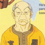 Shigekuni is a weathered, wrinkled man who doesn't try to hide his age. He has a large bald spot going from the top to the front of his head, leaving only short, scruffy sides. His eyebrows are grey, along with his hair, and have a large, angular arch. Having an incredibly short nose and large ears, he somewhat resembles a monkey and usually bears a tired, disapproving look. He almost always wears some pieces of a baseball uniform, sometimes ranging from just the jacket to the full outfit, with a long-sleeved shirt and sweatpants if necessary.