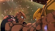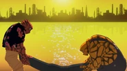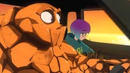 As a child, Shonari was constantly bullied at school due to him being an alien with rock-like skin and was often pelted with rocks by his classmates. At some point, he decided to stand up for himself and throw a rock back at one of his tormentors. Unaware of his own strength, he ended up injuring one of his bullies, named Akira. The incident sent Shonari to a local jail, where his brother tried to explain to the police that he is still just a kid and should not be locked up.
