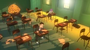 He eventually returns to school but was still being bullied until a classmate named Shinpachi befriended him. Although he continued his education and went to middle school with Shinpachi, due to the constant destruction of the town and people losing hope, the teachers eventually stopped teaching, leaving him, Shinpachi and their other classmate, Orinoko, without any other way to continue their education.